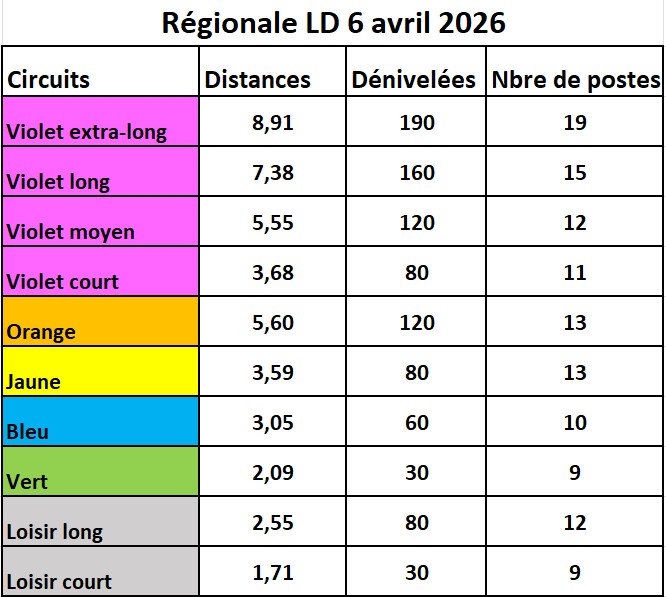 - Le lundi matin 6 avril 2026, course longue distance inscrite au classement national sur la nouvelle carte « Les Brandes ».