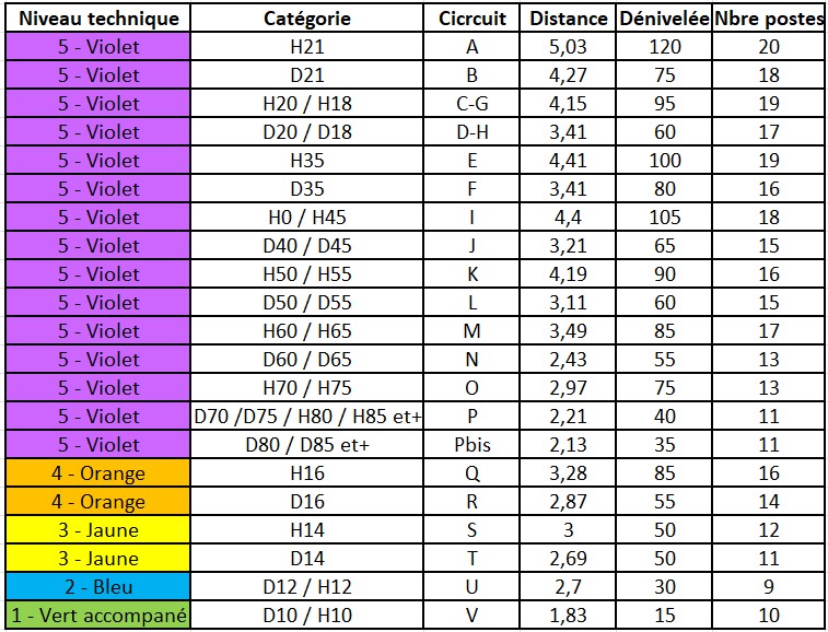 - Catégories / circuits :